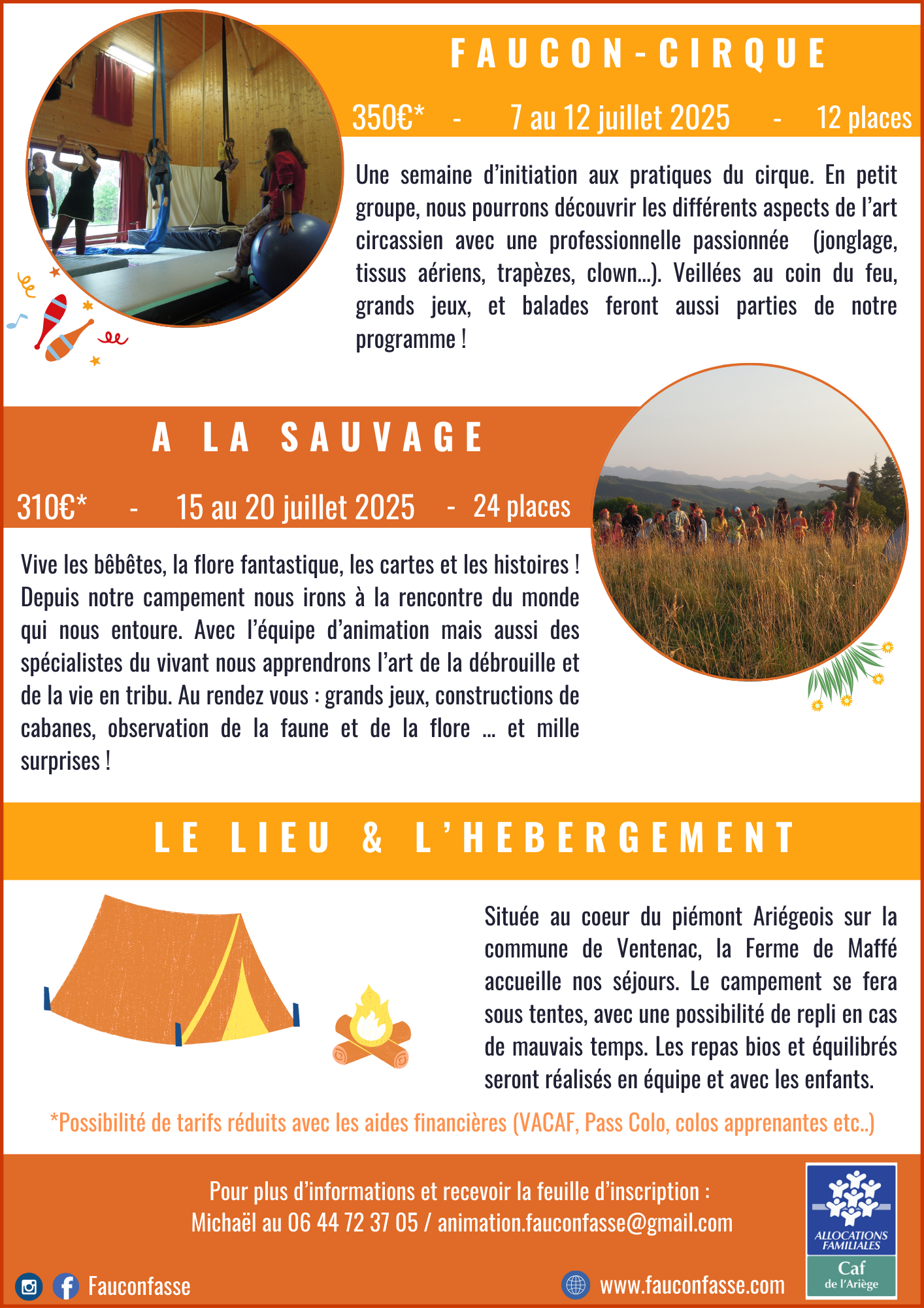 Youhou, les séjours faucon-cirque et à la sauvage redémarrent de plus belle cet été ! Pour toute demande de renseignements ou d’inscriptions Michaël vous répondra au 06 44 72 37 05 / animation.fauconfasse@gmail.com